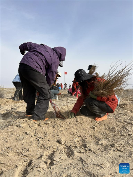 Depuis mars, la base a rassemblé plus de 41 000 volontaires de tout le pays sur les étendues sableuses de Minqin. à ce jour, ils ont planté plus de 1,52 million de saxaouls et de caragana, faisant une promesse verte dans les sables jaunes, a indiqué la base. Le comté a amélioré son expérience unique d'écotourisme du désert en intégrant le système de points de crédit pour la plantation d'arbres.